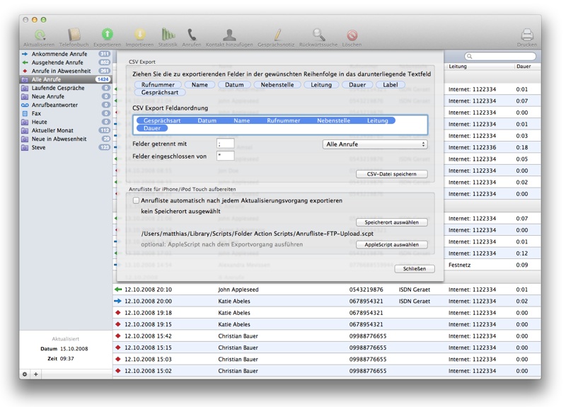 Anrufe exportieren