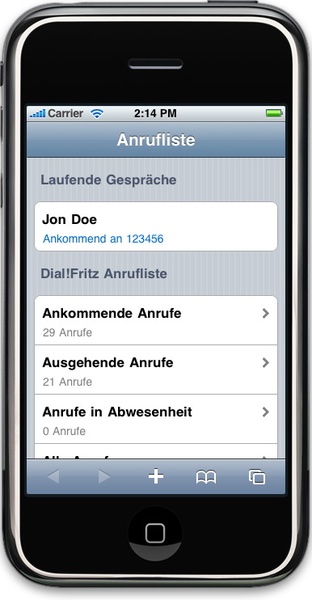 Sie können die Anrufliste nach jedem Anruf für das iPhone bzw. den iPod Touch optimiert von Dial!List als HTML-Webseite exportieren lassen.Dies gibt Ihnen auch mobil die Möglichkeit, auf Ihre aktuelle Anrufliste über Safari zuzugreifen.