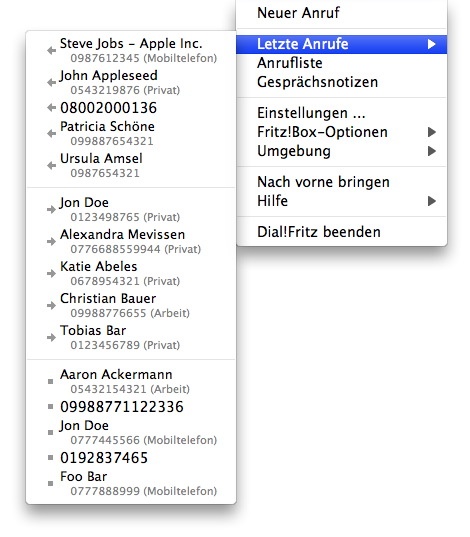 Hier werden Ihnen einige Funktionen von Dial!List kurz vorgestellt Dial!List befindet sich nach dem Start unauffällig, aber immer präsent, in der Menüleiste von Mac OS X. So können sie schnell auf alle Funktionen zugreifen:
