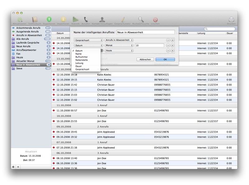 Intelligente Anruflisten geben Ihnen die Möglichkeit ihre eigenen Anruflisten anzulegen.Hierfür stehen Ihnen viele Filtermöglichkeiten zur Verfügung.